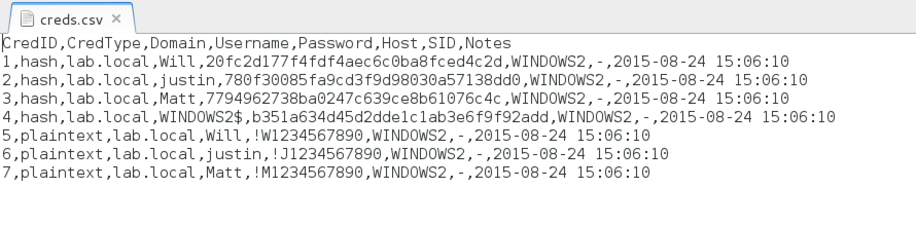You can also filter by plaintext/hashes by typing “creds plaintext” (for all plaintext creds) or “creds hash” (for all hashes).