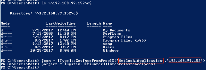 $com = [Type]::GetTypeFromProgID('Outlook.Application’,’192.168.99.152’)