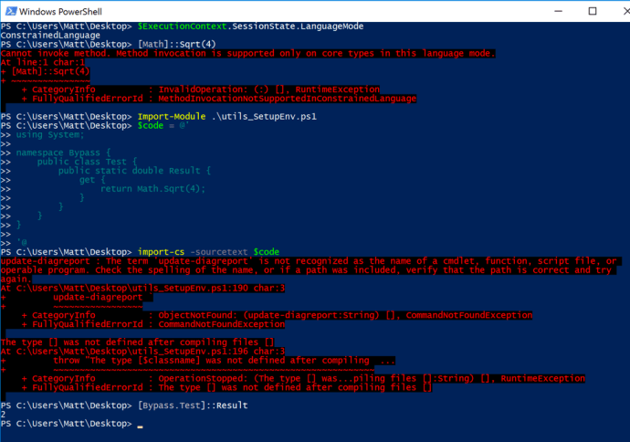 Finally, all that needs done is to set the “Language” property on the ScriptControl object to whatever language that will be executed (JScript or VBScript) and then call the “AddCode()” method with the “$code” variable as a parameter:
