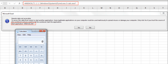 After adding that formula to an Excel spreadsheet and saving it, we can now test it to ensure it displays properly. To do so, I have removed the Excel DDE mitigation registry changes.