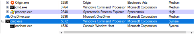 The service will fail to start since “Payload.exe” is not a service executable, but the service will start it and cmd.exe will be running as “NT AUTHORITY\SYSTEM”, resulting in elevation of privilege.