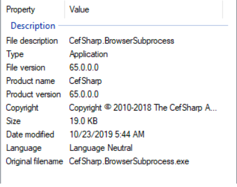 Once done, the update folder will only be accessible by the 3 accepted SIDs. After circumventing the Owner and DACL checks, the last hurdle is to circumvent the file integrity checks. Before executing the update file, the service checks to make sure it is signed by Avira and that the signature is valid (via a call to Updater.IsUpdatePackageAuthentic()). If “C:\ProgramData\Avira\VPN\Update\AviraVPNInstaller.exe” is not signed by Avira and does not contain a valid digital signature, the service will not execute it. In order to circumvent this, we need a file signed by Avira that has a ProductVersion greater than the currently installed version of Avira.VPNService.exe. After some hunting, I came across an Avira signed executable named “CefSharp.BrowserSubprocess.exe” that has a product version of “65.0.0.0”: