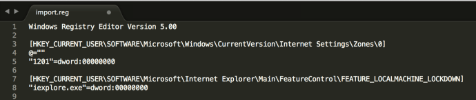 It should be noted that Internet Explorer does apply zone security to prevent automatic execution of ActiveX controls via HTML. When opened, the user will see two prompts, one from IE asking permission to enable the ActiveX content and another security warning alerting the user that the content might be malicious. If an attacker is on a system but doesn’t have unsigned code execution (see WMImplant), all it takes is two User Hive registry changes to temporarily disable the ActiveX alerting, allowing for silent unsigned code-execution. Those two changes look like this: